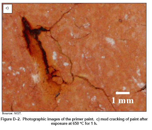 Le NIST s’est intéressé à la réaction thermique de la peinture primaire, puisque l’ examen des poutres en acier récupérées pourrait indiquer les températures qu’elles avaient subies.